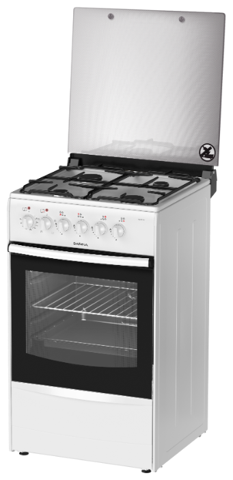 эмалированная рабочая поверхность; 4 конфорки; электрическая духовка, объем 50 л; ШхВхГ: 50х85х50 см; механическое управление