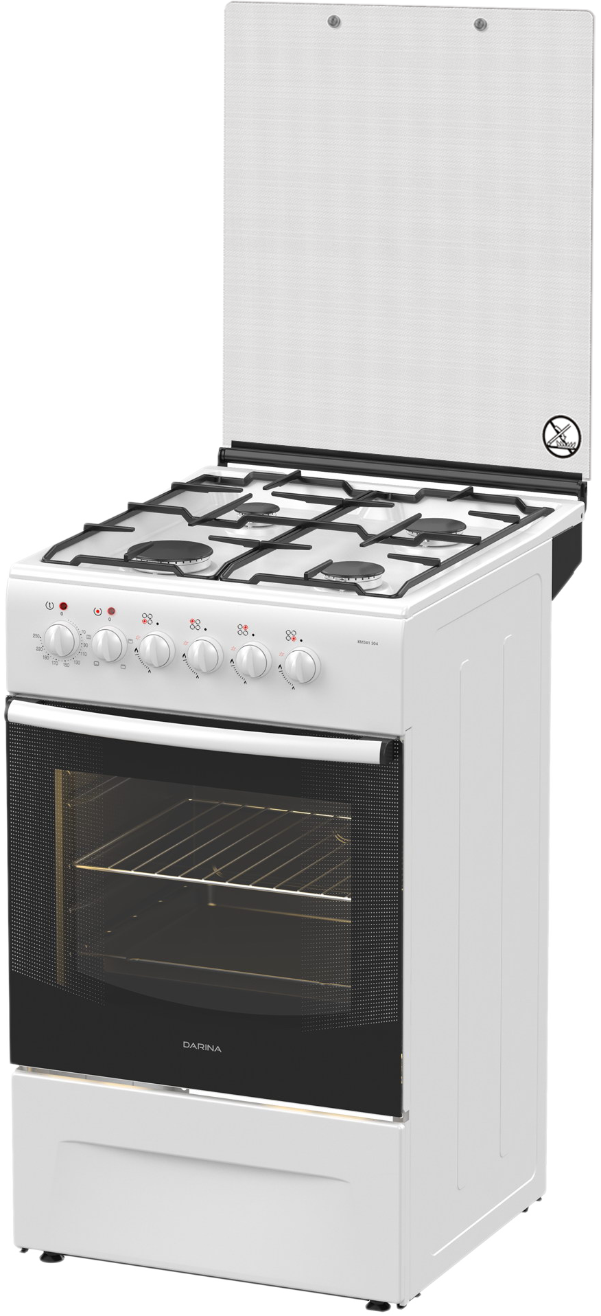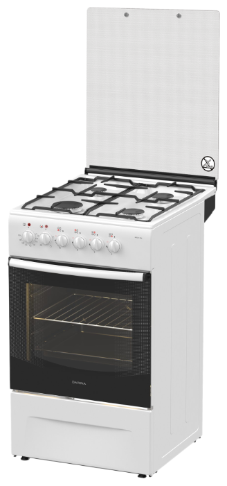 эмалированная рабочая поверхность; 4 конфорки; электрическая духовка, объем 50 л; ШхВхГ: 50х85х56 см; механическое управление; электроподжиг