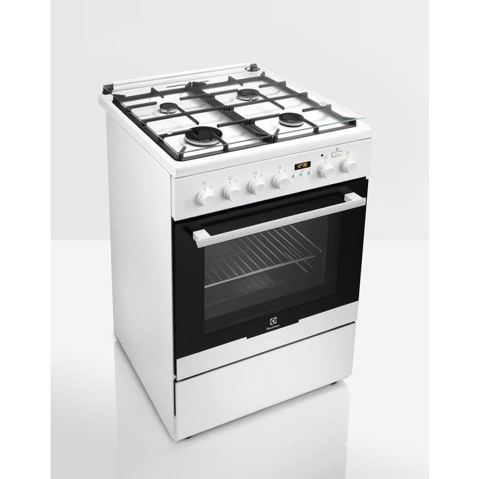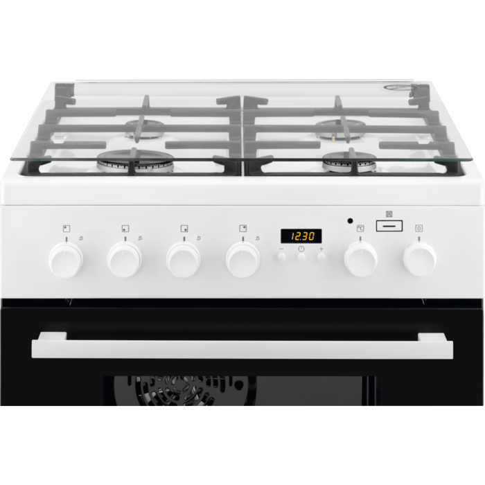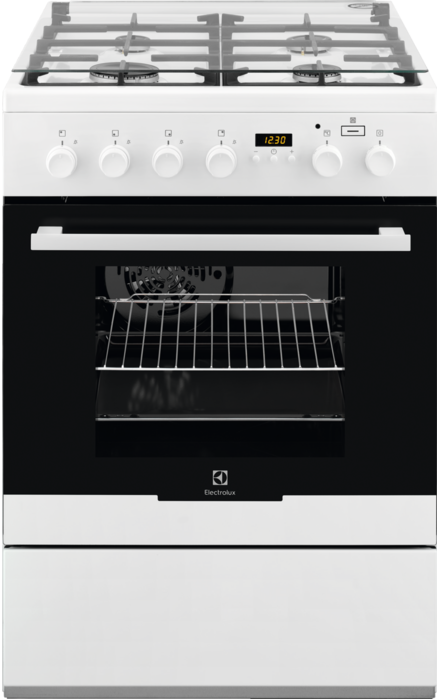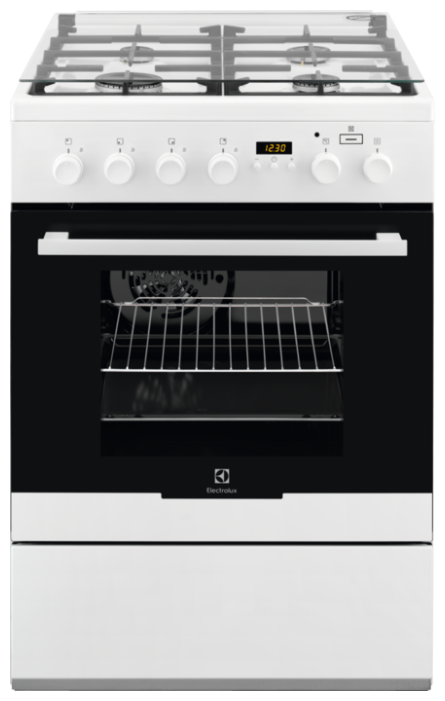 эмалированная рабочая поверхность; 4 конфорки; электрическая духовка; ШхВхГ: 60х85х60 см; гриль; механическое управление; таймер; газ-контроль варочной поверхности, электроподжиг