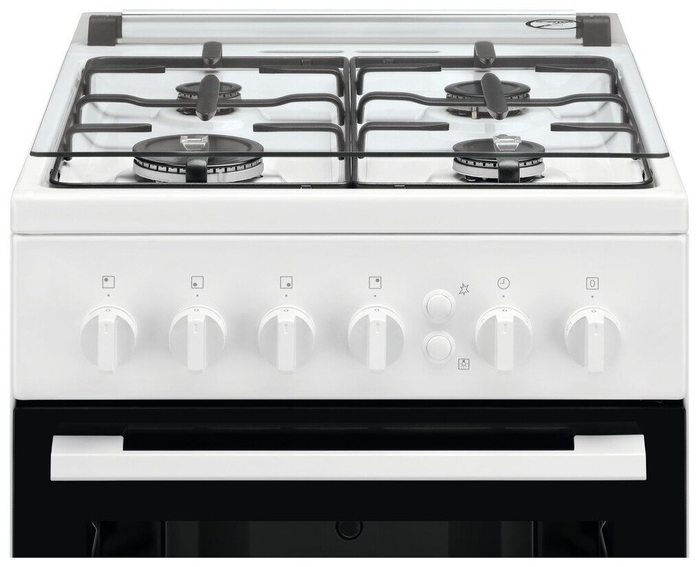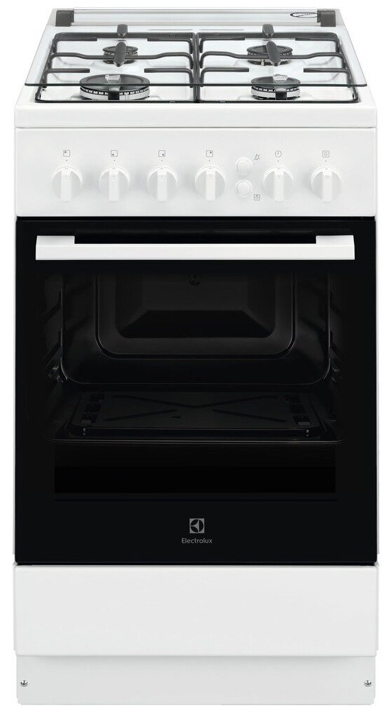 Газовые плиты ELECTROLUX/ Газовая плита с газовой духовкой и газовым грилем, 50см шириной, белого цвета, газовая духовка, газовый гриль, механический таймер с подачей звукового сигнала, 2 режима, держатели для посуды с напылением "под чугун", автоподжиг варочной поверхности, полезный объём 53 л., штампованные направляющие, эмаль лёгкой очистки, термостат, освещение духовки, 150°C - 250°Cавтоподжиг духовки, газконтроль духовки, 2 эмалированных противня: 1 обычный, 1 глубокий, ящик для хранения