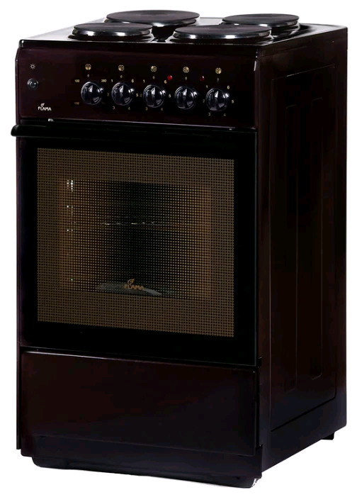 эмалированная рабочая поверхность; 4 конфорки; объем духовки 50 л; ШхВхГ: 50х85х54 см; механическое управление