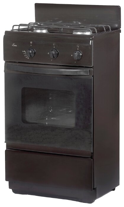 эмалированная рабочая поверхность; 2 конфорки; газовая духовка, объем 30 л; ШхВхГ: 50х85х35 см; механическое управление; газ-контроль духовки