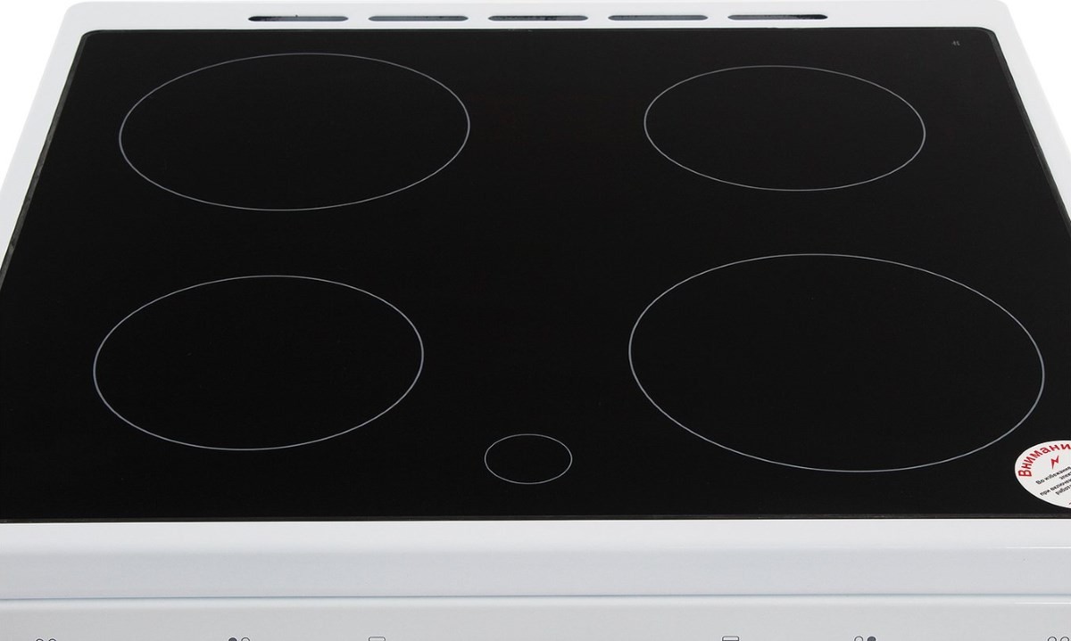 стеклокерамическая рабочая поверхность; 4 конфорки; объем духовки 50 л; ШхВхГ: 60х85х60 см; гриль электрический; механическое управление; таймер