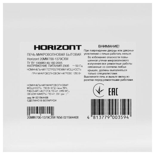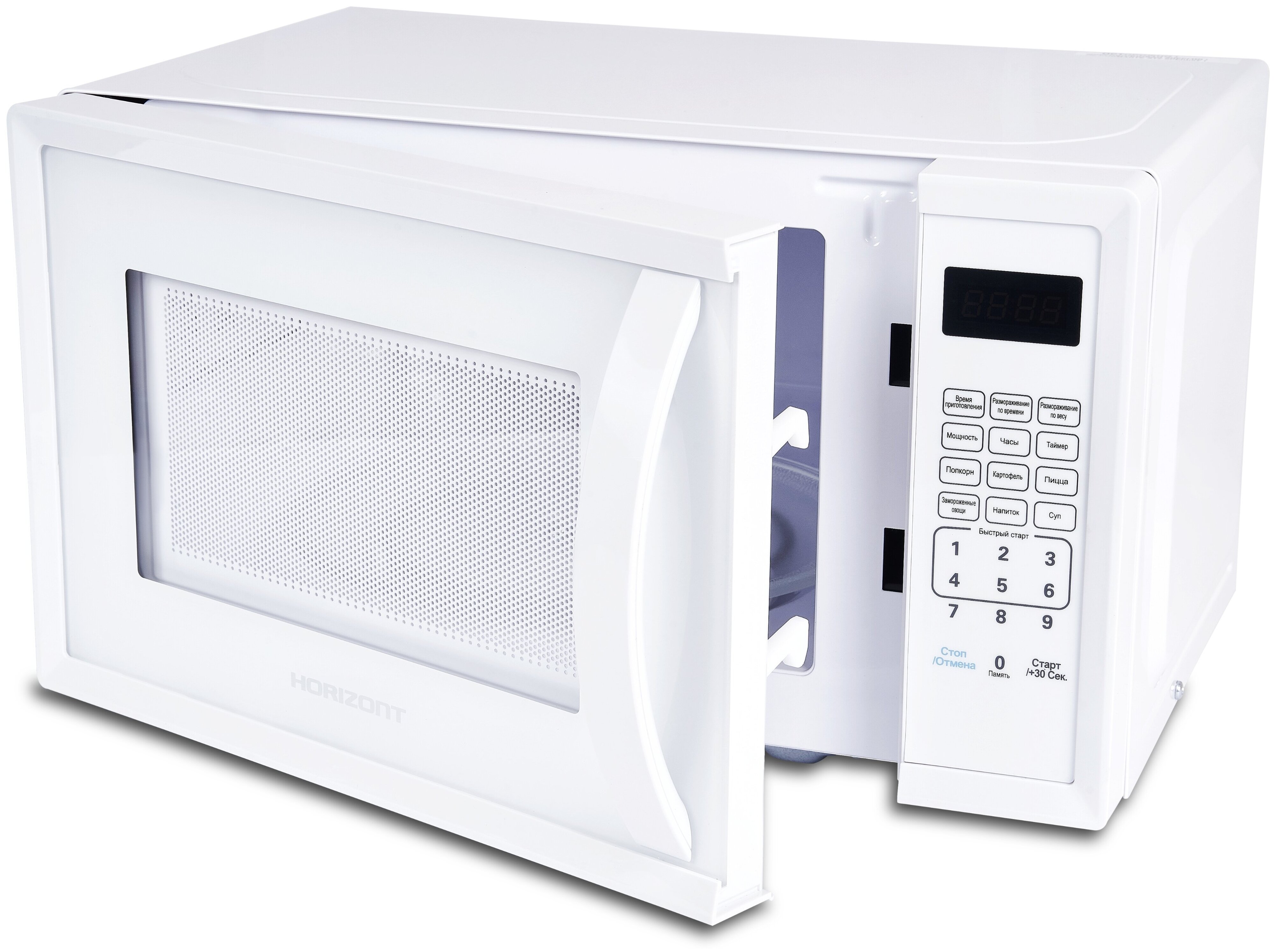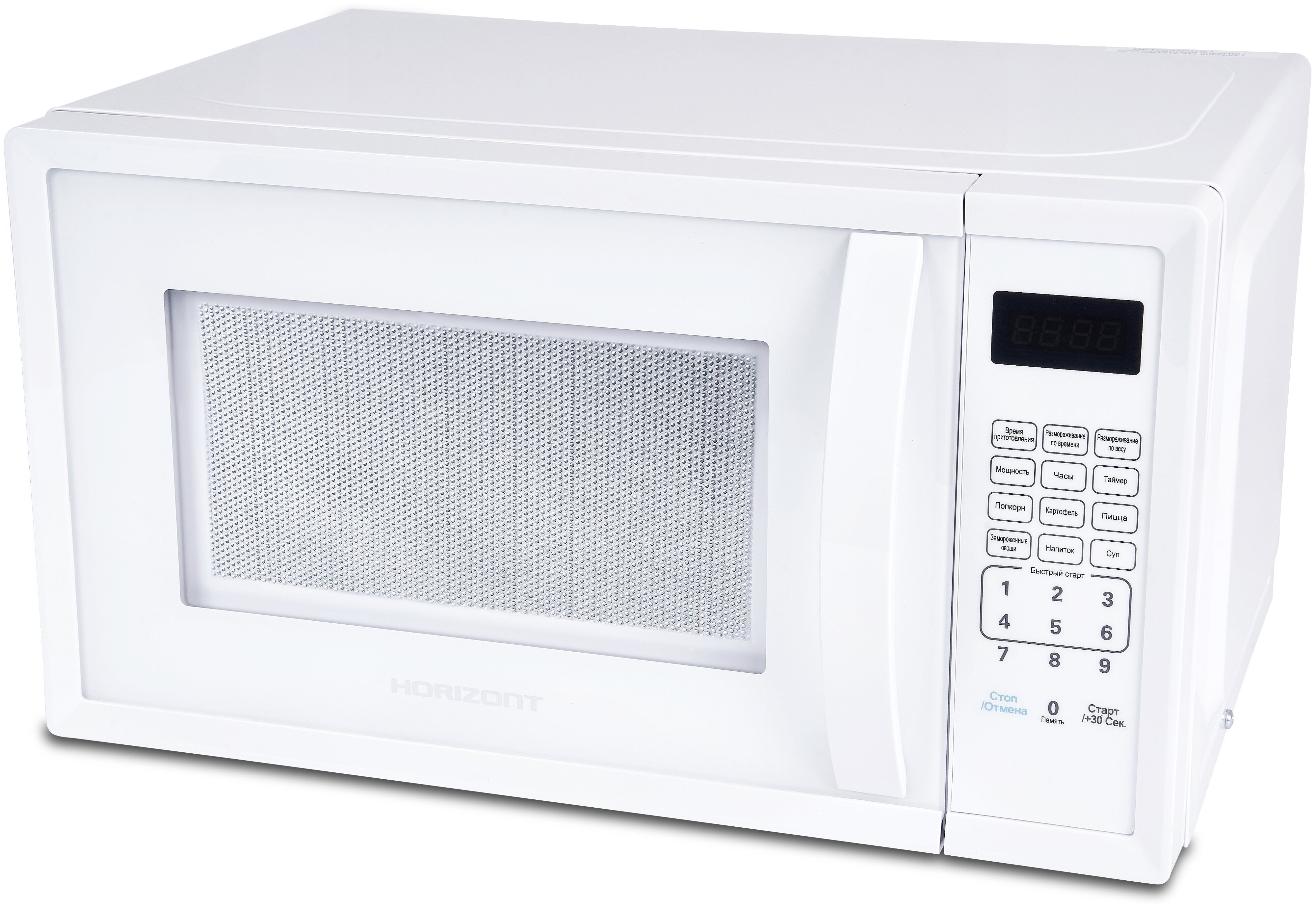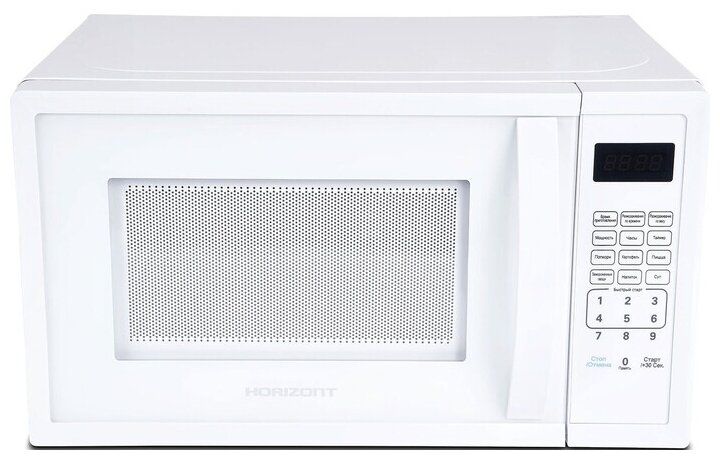 соло (без гриля и конвекции), объем 20 л, мощность микроволн 700 Вт, автоматические режимы: разморозка, разогрев, приготовление, размеры (ШxВxГ): 44x26x33 cм, цвет корпуса: белый