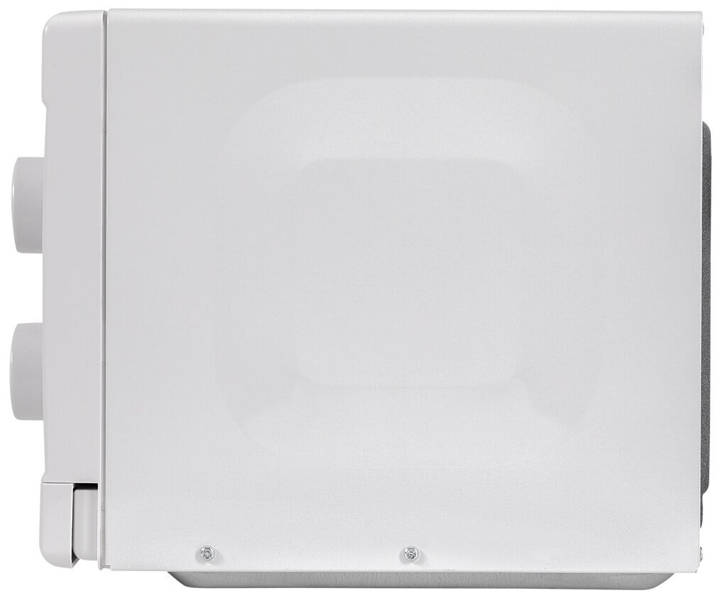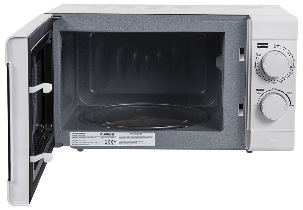 расположение: отдельно стоящая, объем: 20 л, переключатели: поворотные механические, мощность микроволн: 700 Вт, внутреннее покрытие камеры: нерж. сталь, ширина: 45 см, глубина: 33 см, высота: 26.20 см, режимы работы: разморозка, дополнительные режимы: автоматическая разморозка, звуковой сигнал отключения, диаметр поддона: 245 мм, особенности: подсветка камеры