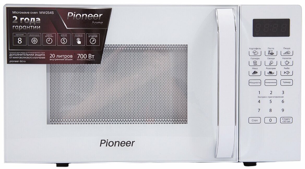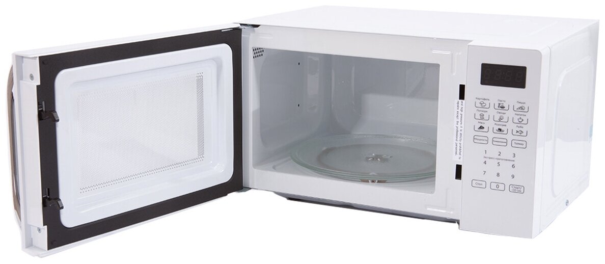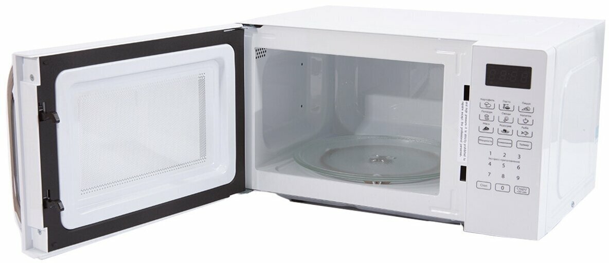 расположение: отдельно стоящая, объем: 20 л, переключатели: сенсорные, мощность микроволн: 700 Вт, внутреннее покрытие камеры: эмаль, ширина: 45 см, глубина: 31.20 см, высота: 24 см, режимы работы: разморозка, дополнительные режимы: автоматическое приготовление, звуковой сигнал отключения, экспресс-режим приготовления, диаметр поддона: 255 мм, особенности: блокировка от детей, дисплей