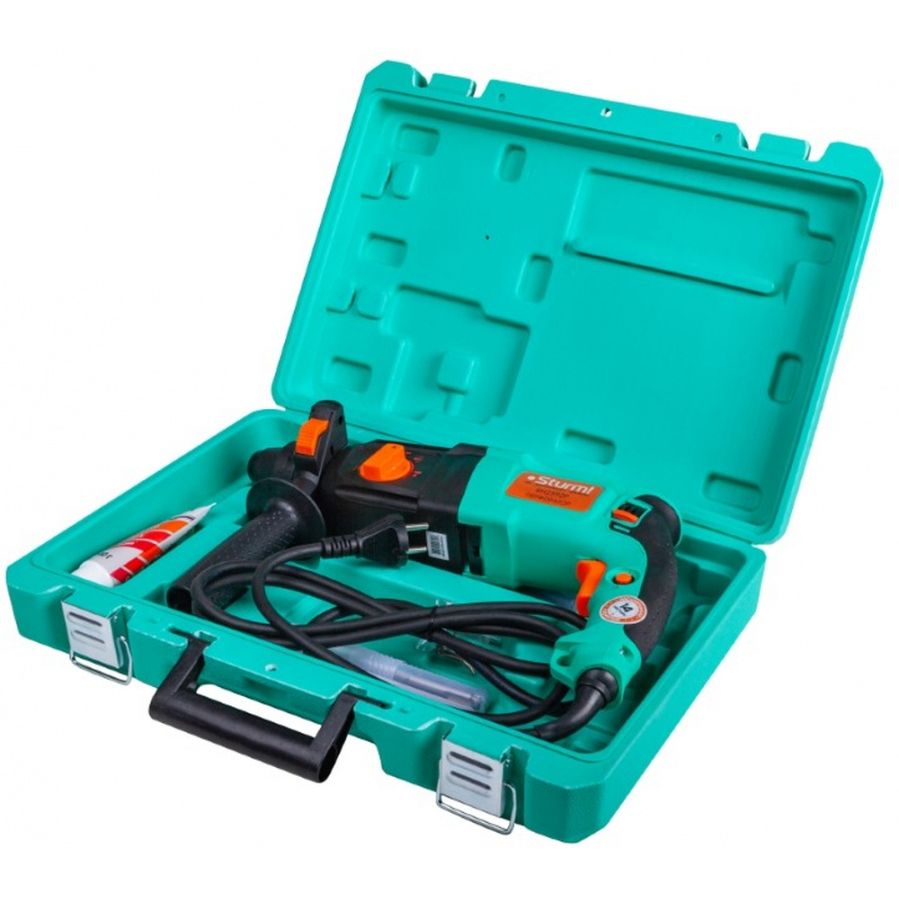 Общие параметры; Тип ; перфоратор; Модель ; STURM! RH2592P; Основные характеристики; Тип крепления бура ; SDS-Plus; Мощность (Вт) ; 910 Вт; Максимальная энергия удара (Дж) ; 2.7 Дж; Максимальное количество ударов в минуту ; 4400 уд/мин; Максимальное число оборотов холостого хода (об/мин) ; 1100 об/мин; Режимы работы ; долбление, сверление, сверление с ударом; Фиксация шпинделя ; есть; Функции и возможности; Максимальный диаметр сверления (бетон) ; 26 мм; Особенности управления; Реверс ; есть; Антивибрационная система ; есть; Система быстрой замены патрона ; есть; Ограничитель глубины сверления ; есть; Электронная регулировка частоты вращения/ударов ; есть; Питание; Питание устройства ; нет; Длина сетевого кабеля ; 2 м; Безопасность; Блокировка кнопки включения ; есть; Предохранительная муфта ; нет; Дополнительная рукоятка ; есть; Дополнительная информация; Быстрозажимной патрон в комплекте ; нет; Кейс в комплекте ; есть; Комплектация ; дополнительная рукоятка, кейс, ограничитель глубины бурения/сверления, до