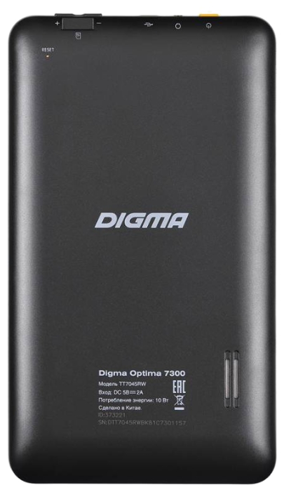 диагональ: 7" (1024x600) TFT; встроенная память: 8 ГБ, слот microSDHC; оперативная память: 512 МБ; процессор: RockChip RK3126; операционная система: Android 6.0; камеры: фронтальная 0.30 МП; беспроводные интерфейсы: WiFi 802.11n; проводные интерфейсы: micro-USB, mini jack 3.5 mm; емкость аккумулятора: 2500 мА·ч; размеры: 191.5x109.5x10 мм, вес: 260 г