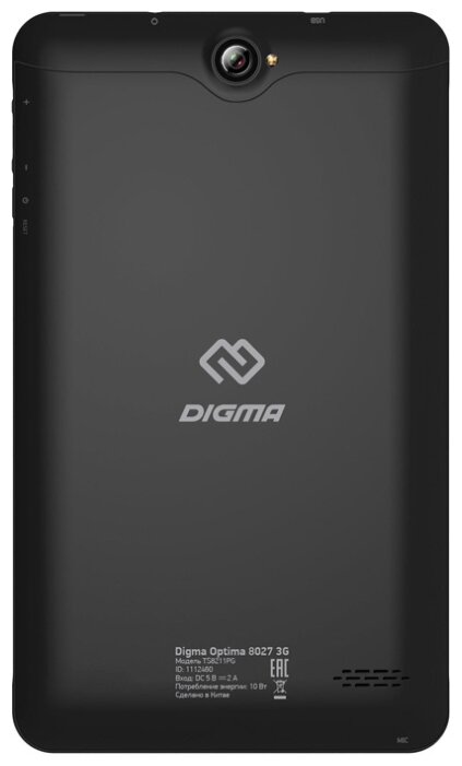 диагональ: 8" (1280x800) IPS; встроенная память: 16 ГБ, слот microSDXC; оперативная память: 1 ГБ; процессор: Spreadtrum SC7731E; операционная система: Android 8.1; камеры: основная 2 МП, фронтальная 0.30 МП; SIM-карты: 2; беспроводные интерфейсы: 3G, WiFi 802.11n, Bluetooth 4.2; проводные интерфейсы: micro-USB, mini jack 3.5 mm; емкость аккумулятора: 3500 мА·ч; размеры: 208x123x10 мм, вес: 320 г