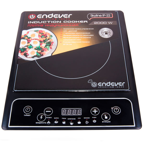 Регулярно пользуемся настольной плитой Endever Skyline IP-22. Это очень удобно! Хоть у меня и есть обычная стационарная электрическая плита, но бывает её мне не хватает. Был случай, когда она вышла из строя, и я полностью пользовалась одноконфорочной настольной плитой. Сразу и не скажешь, что это плита. Больше похожа на напольные весы. Поверхность выполнена из стеклокерамики. Её очень легко держать в чистоте. Есть 7 автоматических программ приготовления: готовка, жарка, гриль, кипячение, суп, молоко и каша. Плита может разогреваться до 270 градусов. Есть отключение при перегреве и от перенапряжения. Всё включено! Достоинства: