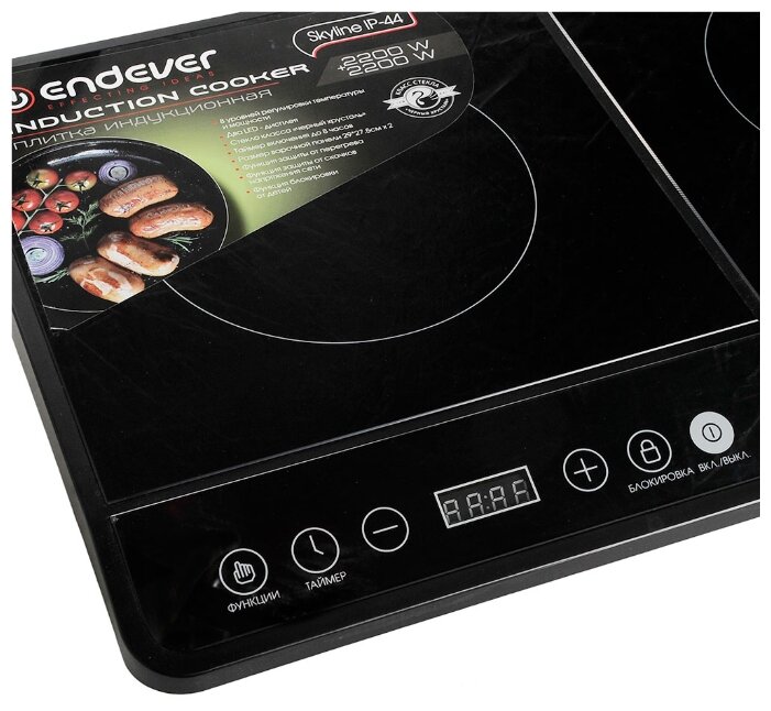 Панель плитки из сверхпрочного ,закалённого стекла. Конфорок для приготовления две , что конечно удобнее чем одна , но в целях экономии можно и купить с одной конфоркой ( по цене это будет подешевле ) , но я не стала экономить , взяла модель Endever Skyline IP-44. Индукционная плита , абсолютно технически грамотная , продумано все до мелочей. Всего 8 режимов работы , что позволяет приготовить разнообразных блюд. ЖК- дисплей - упрощённый вариант ,все подробно и понятно. Смело можно готовить , не боясь за качество приготовляемой еды , все блюда получаются отлично и не стоит беспокоиться о экологичности блюд , мифы о индукционных плитах сильно преувеличены.