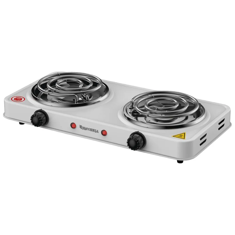 Плитка электрическая Чудесница ЭЛП-808 с 2-мя конфорками : Цвет: белый : Мощность: 2000 Вт : Материал: сталь : Спираль- нагревательный элемент, плавная регулировка температуры, прочное легкоочищаемое термостойкое эмалевое покрытие, защита от перегрева, световой индикатор работы. ;