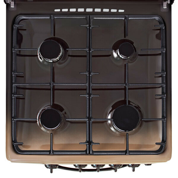 Тип варочной панели: газовая: Высота: 85 см: Глубина: 60 см: Ширина: 60 см: Тип управления: механическое: Переключатели: поворотные: Варочная панель: Общее количество конфорок: 4: Число газовых конфорок: 4: Характеристики конфорок: Конфорки: Двойная корона, Тройная корона, газовая, экспресс-конфорка: Материал рабочей поверхности: эмалированная сталь: Духовка: Тип духовки: газовая: Объем духовки: 63 л: Количество стекол дверцы духовки: два: Дверца: откидная: Очистка духовки: традиционная: чугунные решетки, ящик для посуды: Газ-контроль: духовки, конфорок;;;;;;