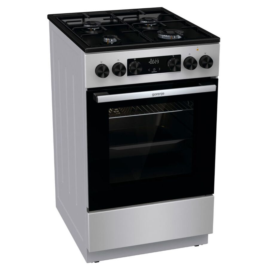 Общие Характеристики: ; Брэнд; GORENJE; Модель; GK5C60SJ; Тип плиты ; комбинированная; Материал рабочей поверхности ; эмалированная сталь; Материал решетки ; сталь; Класс энергопотребления ; A; Наличие крышки; без крышки; Газовые конфорки; Количество газовых конфорок ; 4; Электроподжиг ; есть; Левая ближняя конфорка ; мощность 1000 Вт; Левая дальняя конфорка ; мощность 1900 Вт; Правая ближняя конфорка ; мощность 3000 Вт; Правая дальняя конфорка ; мощность 1900 Вт; Духовка; Тип духовки ; электрическая; Объем духовки ; 62 л; Очистка духовки ; очистка паром AquaClean; Количество режимов духовки ; 11; Количество стекол дверцы духовки ; 2; Освещение духовки ; есть; Цвет, размеры, вес; Цвет ; серый; Размеры (ШхВхГ) ; 50 х 85 х 59.4 см