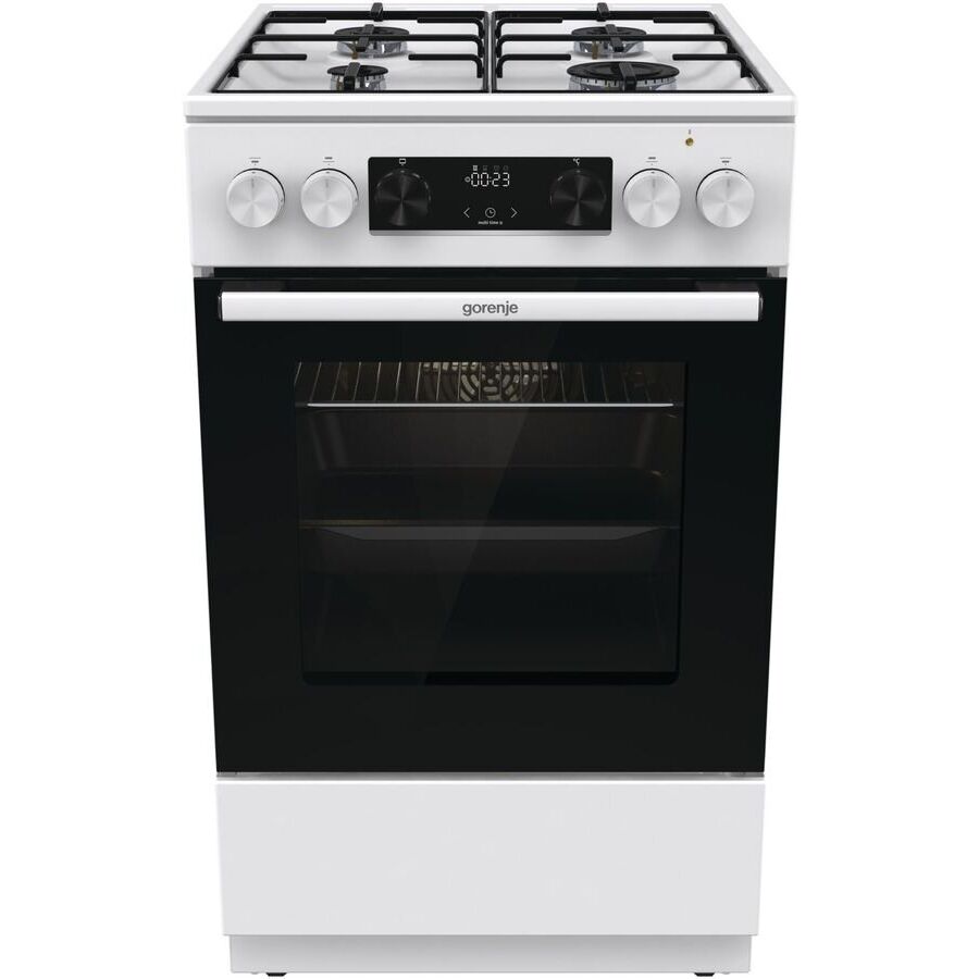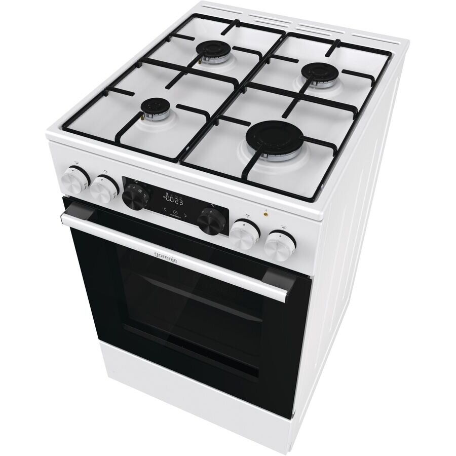 Общие Характеристики: ; Брэнд; GORENJE; Модель; GK5C60WJ; Тип плиты ; комбинированная; Материал рабочей поверхности ; эмалированная сталь; Материал решетки ; сталь; Управление ; механическое; Дисплей ; есть; Таймер ; есть; Тип таймера ; электронный; Ящик для хранения посуды ; есть; Наличие крышки; без крышки; Газовые конфорки; Количество газовых конфорок ; 4; Электроподжиг ; автоматический; Газ-контроль конфорок ; есть; Левая ближняя конфорка ; мощность 1000 Вт диаметр 54 мм; Левая дальняя конфорка ; мощность 1900 Вт диаметр 74 мм; Правая ближняя конфорка ; мощность 3000 Вт диаметр 99 мм; Правая дальняя конфорка ; мощность 1900 Вт диаметр 74 мм; Духовка; Тип духовки ; электрическая; Объем духовки ; 62 л; Газ-контроль духовки ; отсутствует; Очистка духовки ; очистка паром AquaClean; Режимы духовки ; Классический нагрев. Классический нагрев + работа вентилятора. Быстрый нагрев духовки. Большой гриль. Большой гриль + работа вентилятора. Вентиляционный нагрев. Размораживание. AirFry: интенсивное запекание. Froze