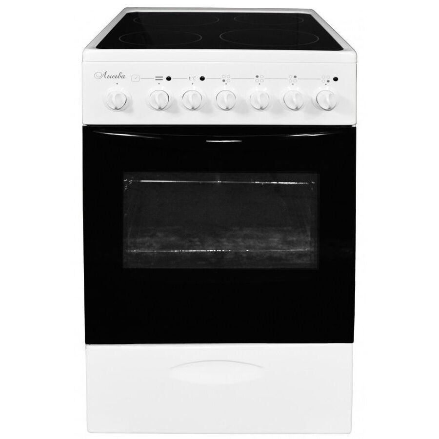 Тип электроплиты отдельностоящая: Управление механическое: Класс энергопотребления A: Варочная поверхность: Материал рабочей поверхности стеклокерамика: Количество электрических конфорок 4: Левая дальняя конфорка мощность 1700 Вт диаметр200 мм: Правая дальняя конфорка мощность 1200 Вт диаметр165 мм: Левая ближняя конфорка мощность 1200 Вт диаметр165 мм: Правая ближняя конфорка мощность 1700 Вт диаметр200 мм: Духовка: Мощность духовки 2000 Вт: Объем духовки 57 л: Максимальная температура 300 °С: Внутреннее покрытие духовки эмаль: Очистка духовки традиционная: Гриль электрический: Количество стекол в дверце 2: Освещение духовки есть: Особенности: Таймер есть: Тип таймера механический: Индикаторы остаточного тепла есть: Ящик/отсек для хранения посуды есть: Особенности ТЭН верхний мощностью 0,8 кВт, ТЭН нижний мощностью 1,2 кВт.: Размеры и цвет: Цвет белый/черный: Размеры (ШхВхГ) 50 х 84 х 60 см: Вес (нетто) 33 кг;;;;;;;;;;