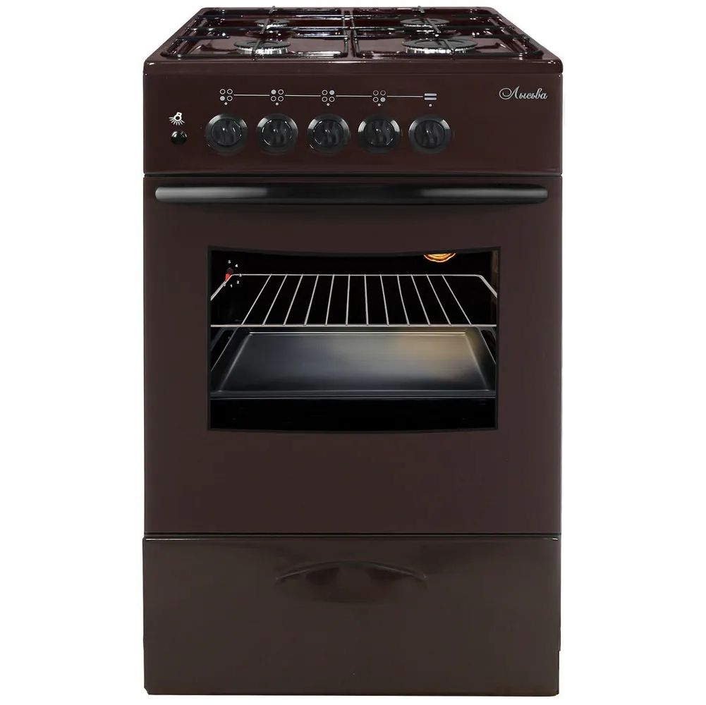 Основные: Тип питания: Газовый: Конфорки: Тип конфорок: Газовые: Материал рабочей поверхности: Эмалированная сталь: Количество конфорок: 4: Габариты и вес: Ширина плиты, см: 50: Глубина плиты, см: 60: Высота, см: 84: Дополнительные: Тип духовки: Газовый: Объем духовки, л: 57: Тип управления: Механическое: Материал решеток: Чугун: Цвет: Коричневый: Тип установки: Независимая: Направление открывания дверцы: Откидная: Количество стекол дверцы духовки: 2: Особенности духовки, плиты: Ящик для посуды: Размеры, мм: 500х600х840: Тип панели (плиты): Газовая;;;