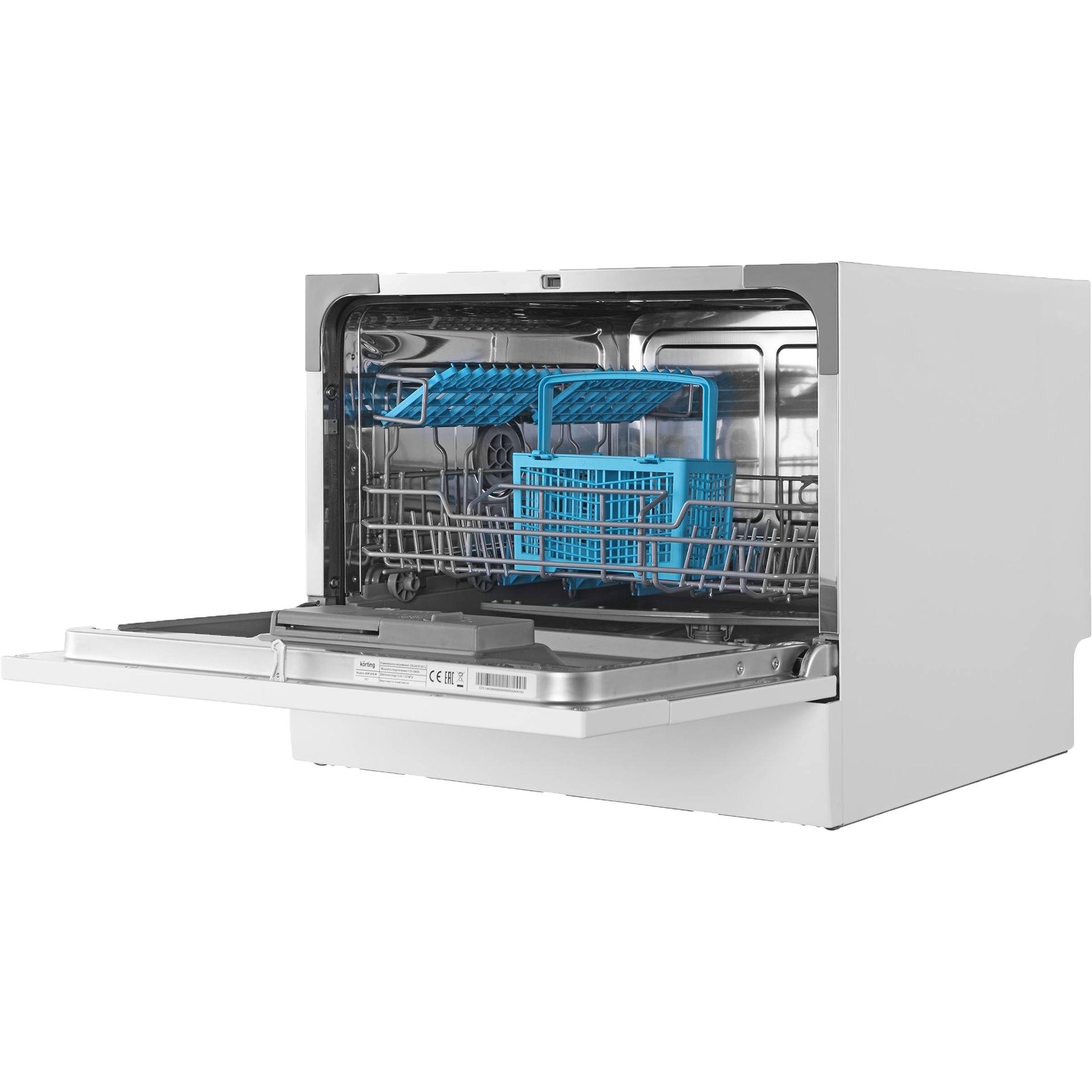 Тип: Отдельностоящая техника: Цвет: Белый: Варианты цветов: Серебристый: Белый: Ширина (см): 55: Корзины (шт): 1: Вместимость (комп): 6: Регулировка высоты корзины: Нет: Корзина для столовых приборов: Нет: C-Shelf корзина для столовых приборов: Нет: Управление: Электронное: Дисплей: LED индикаторы: Программ (шт): 7: Программы: Интенсивная: Стандартная: Экономичная: Стекло: 90 минут: Быстрая: Самоочистка: Автоматическая программа: Нет: Программа Baby Care: Нет: Использование таблеток: Да: Отложенный старт (ч): 1-24: Внутреннее освещение: Нет: Половинная загрузка: Нет: Автооткрывание дверцы: Нет: Держатель для бокалов: Нет: S-Form разбрызгиватели: Нет: Spiral Wash разбрызгиватель: Нет: Дополнительные особенности: Переносная корзина для столовых приборов: Дополнительные характеристики:: Класс мойки: A: Класс сушки: A: Класс энергопотребления: A+: Потребляемая мощность (Вт): 1170-1380: Энергопотребление (кВт/ч): 0.61: Потребление воды (л): 6.5: Разбрызгивателей (шт): 1: Сушка: Конденсационная: Тип ТЭНа: Проточный