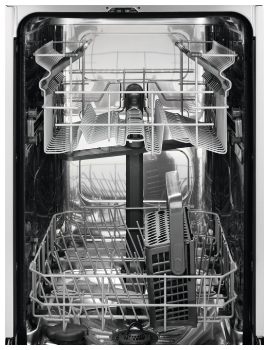 - Особенности рабочей камеры: внутренняя поверхность из нерж. стали, регулируемая по высоте корзина для посуды