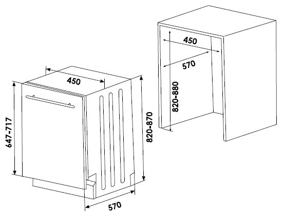 узкая, встраиваемая полностью, ширина 45 см; вместимость: 10 комплектов; 6 программ мойки; расход воды 11 л; турбосушка сушка класса A; таймер отсрочки запуска; класс энергопотребления A++; уровень шума при работе 52 дБ; полная защита от протечек