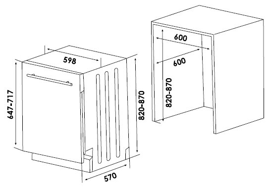 полноразмерная, встраиваемая полностью, ширина 59.8 см; вместимость: 15 комплектов; 6 программ мойки; расход воды 12 л; конденсационная сушка класса A; таймер отсрочки запуска; класс энергопотребления A++; уровень шума при работе 52 дБ; полная защита от протечек