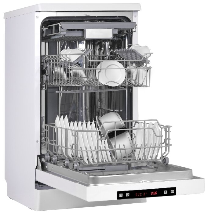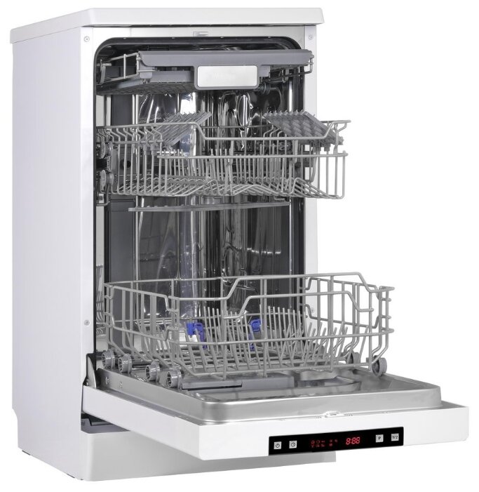 С появлением третьего маленького ребенка в семье стало понятно, что тратить время на постоянное мытье посуды весьма глупая затея. Стали выбирать помощника и выбор пал на эту модель. Она органично вписалась в нашу небольшую кухню. С подключением проблем не возникло. С тех пор, мы забыли о горах посуды в раковине. несмотря на небольшую ширину она довольно глубокая и в неё помещается много посуды. Редко когда ставим её больше 1 раза в день.