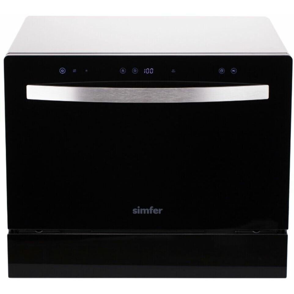 Общие характеристики: Бренд: Simfer: Цвет: черный: Вместимость: 6 комплектов: Тип: компактная: Тип установки: отдельно стоящая: Класс энергопотребления: A+: Класс мойки: A: Класс сушки: B: Управление: сенсорное: 3-й разбрызгиватель: нет: Высота: 45 см: Ширина: 55 см: Глубина: 50 см: Вес: 21.7 кг: Расход воды: 7.5 л: Максимальная потребляемая мощность: 1500 Вт: Уровень шума при работе: 58 дБ: Программы и режимы мойки: Программы: быстрая, деликатная, интенсивная, стандартная, БИО: Количество программ мойки: 5: Количество температурных режимов: 5: Тип сушки: конденсационная: Время мойки при обычной программе: 60 мин: Особенности: Особенности конструкции: дисплей, использование средств 3 в 1, Внутреннее освещение, Таймер: Минимальное время отсрочки запуска: 1 ч: Максимальное время отсрочки запуска: 24 ч: Индикация работы: звуковая: Индикаторы наличия средств: наличия ополаскивателя, наличия соли: Безопасность: защита от детей, защита от протечек: Тип защиты от протечек: частичная (корпус): В комплекте: корзина дл