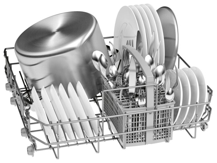 - Особенности рабочей камеры: внутренняя поверхность из нерж. стали, регулируемая по высоте корзина для посуды
