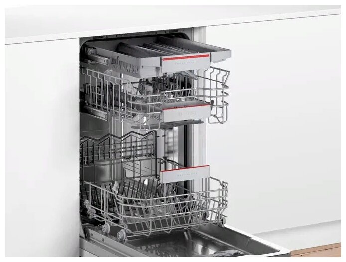 узкая, встраиваемая полностью, ширина 44.8 см; вместимость: 10 комплектов; 5 программ мойки; инверторный двигатель; расход воды 9.5 л; управление со смартфона; интенсивная сушка класса A; таймер отсрочки запуска; класс энергопотребления A; защита от детей; уровень шума при работе 44 дБ; полная защита от протечек