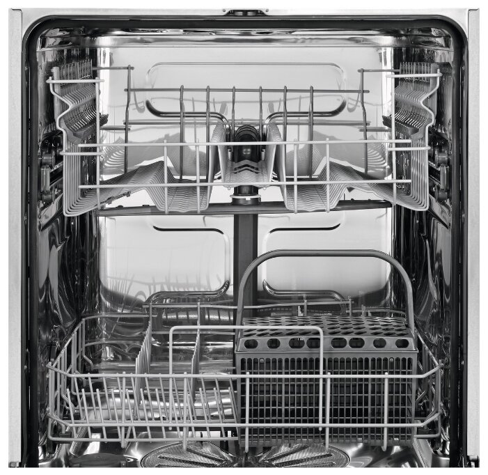 - Особенности рабочей камеры: внутренняя поверхность из нерж. стали, регулируемая по высоте корзина для посуды