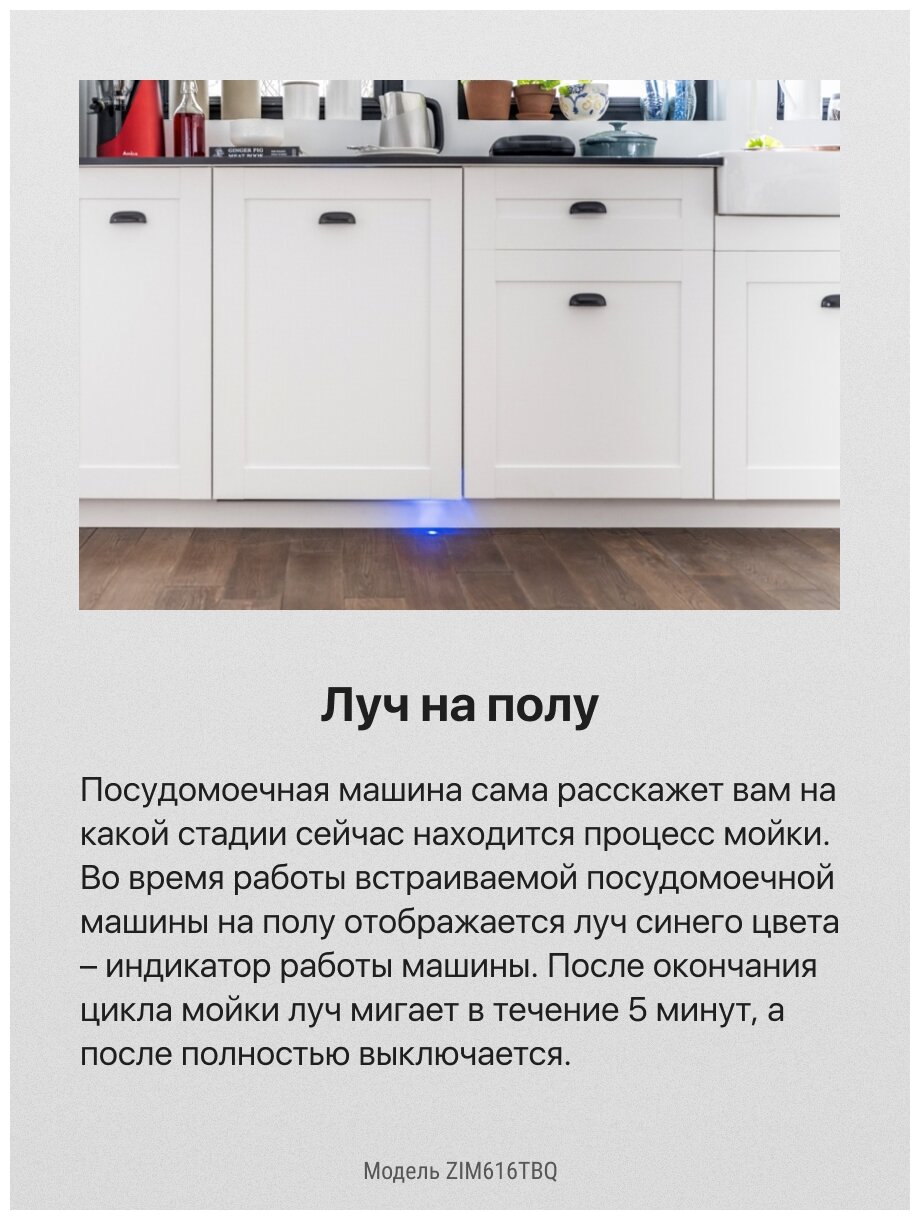 тип установки: встраиваемая полностью, тип: полноразмерная, ширина: 59.80 см, высота: 81.50 см, глубина: 55 см, безопасность: защита от протечек, индикация на полу: луч, программы: быстрая, режим половинной загрузки, тип сушки: конденсационная, вместимость: 13 комплектов, 3-й разбрызгиватель, таймер отсрочки запуска, звуковой сигнал, управление: электронное, особенности конструкции: регулируемая по высоте корзина для посуды