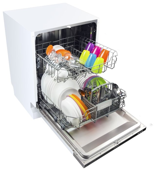 Одно из главных достоинств это посудомоечной машины - тихость. В квартире, где есть грудной ребенок - это важно. После окончания работы на полу появляется специальный синий индикатор. Есть выдвижной отсек для ложек и вилок. Габариты средние - 60 см. Хватает того, чтобы спокойно впихнуть все сковородки и кастрюли. Есть удобная функция таймера. Можно выставить его согласно расписанию. Достоинства: