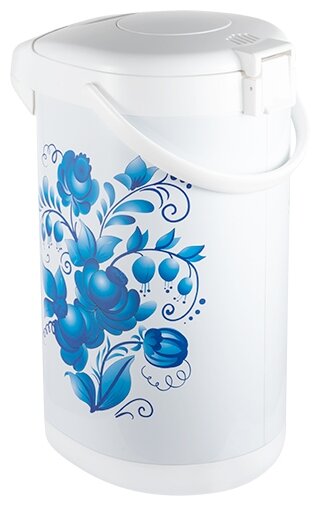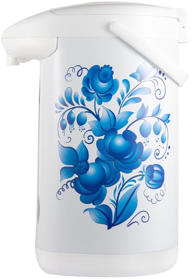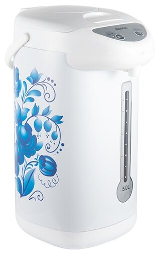 тип: термопот, материал корпуса: металл, объем: 5 л, тип нагревательного элемента: закрытая спираль, дополнительные функции: поддержание тепла, особенности: рисунок на корпусе, двойные стенки, индикатор уровня воды, фильтр, индикация включения, съемная крышка