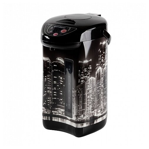 Картинка ночного города выглядит здорово, оказалась чуть светлее, чем я думала, но не существенно, дизайном всё равно красивый. При распаковке прослеживался лёгкий запах, помыла, прокипятила, при втором кипячении исчез, воду разливает без привкуса, так что вкус чая ничего не портит. Свои четыре литра термопот кипятит довольно быстро, хотя мне, как человеку нетерпеливому, хотелось бы, конечно, ещё быстрее, но ничего, так тоже нормально, свыклась. Очень удобно, что предусмотрена шкала в корпусе и три варианта подачи воды, для меня их наличие было обязательным. Вроде обо всем сказала, используем чуть больше месяца, надеюсь долго будет служить, пока не разочаровывал, за свою цену пойдёт, берите. Достоинства: