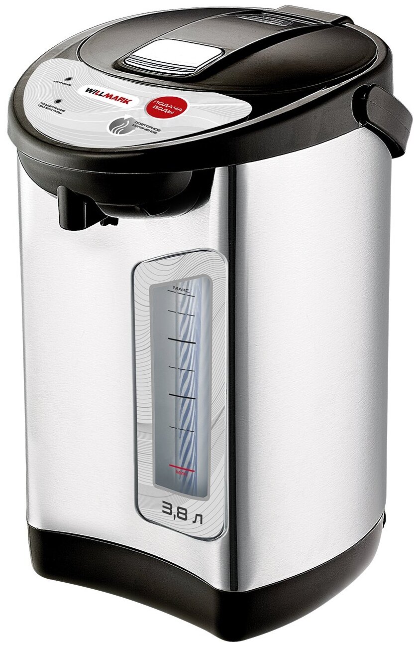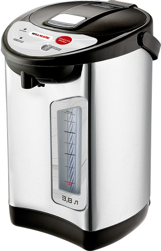 тип: термопот, материал корпуса: металл/пластик, объем: 3.80 л, тип нагревательного элемента: закрытая спираль, дополнительные функции: поддержание тепла, особенности: двойные стенки, вращение на 360 градусов, индикатор уровня воды, съемная крышка