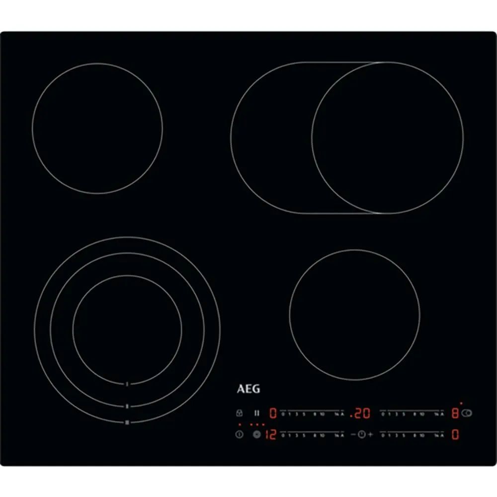 Конфорки: Количество конфорок: 4: Многоконтурные конфорки: Трехконтурная: Количество трехконтурных конфорок: 1: Особые конфорки: Овальная зона нагрева, HiLight: Основные: Тип панели (плиты): Электрическая: Конструкция панели: Независимая: Мощность варочной панели, Вт: 4700: Системы защиты: Автоотключение, Блокировка от детей: Управление: Индикация: Время до отключения, Выбранная мощность, Остаточное тепло: Особенности варочной панели: Расширение зоны нагрева: Общие: Тип: Варочная панель: Размеры, мм: 580х510: Страна-изготовитель: Германия: Габариты и вес: Ширина, см: 58: Глубина, см: 51: Размеры ниши для встраивания панели, мм: 560х490: Ширина встраивания, см: 56: Глубина встраивания, см: 49: Минимальная толщина столешницы, мм: 12: Рабочая поверхность: Материал рабочей поверхности панели: Стеклокерамика: Установка: Стандартная: Наличие рамки: Нет: Дополнительные: Бренд: AEG: Цвет: Черный;