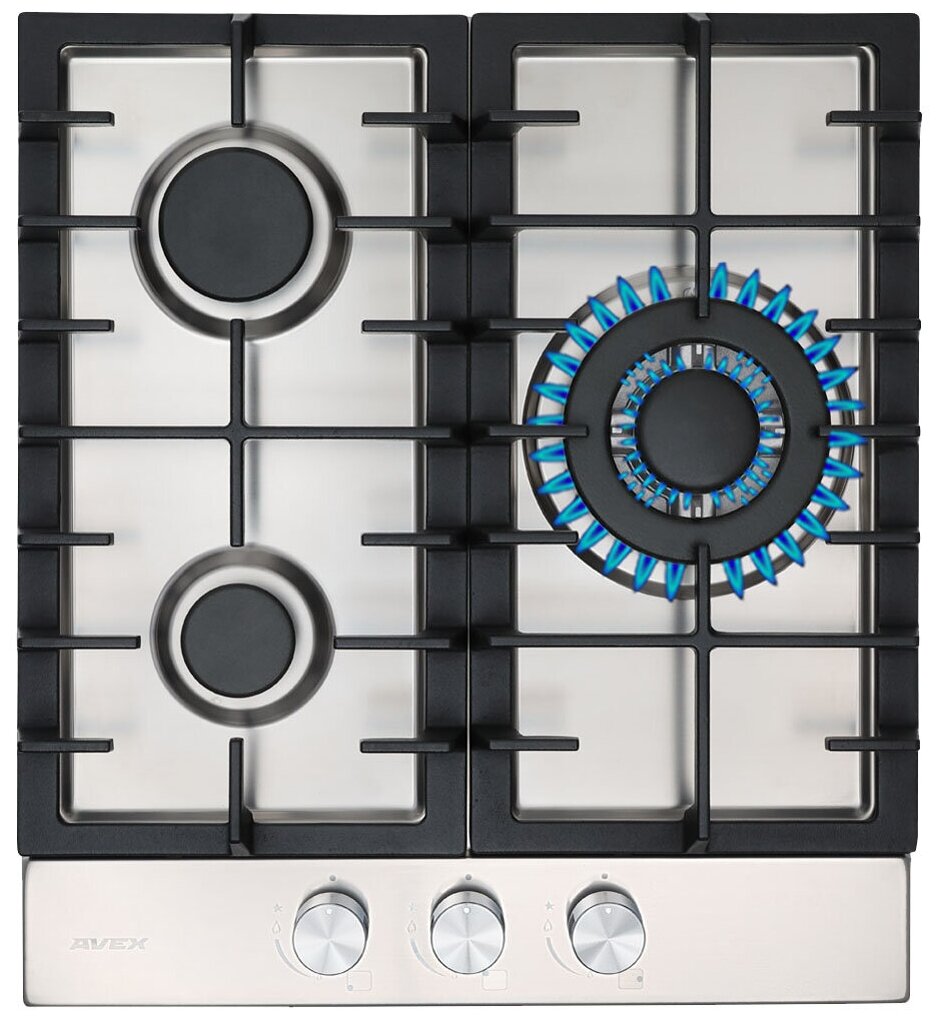 тип панели: газовая, количество конфорок: 3, материал панели: нержавеющая сталь/эмаль, установка: независимая, переключатели: поворотные, ширина: 45 см, глубина: 50 см, безопасность: защитное отключение конфорок, максимальная потребляемая мощность: 9.20 кВт