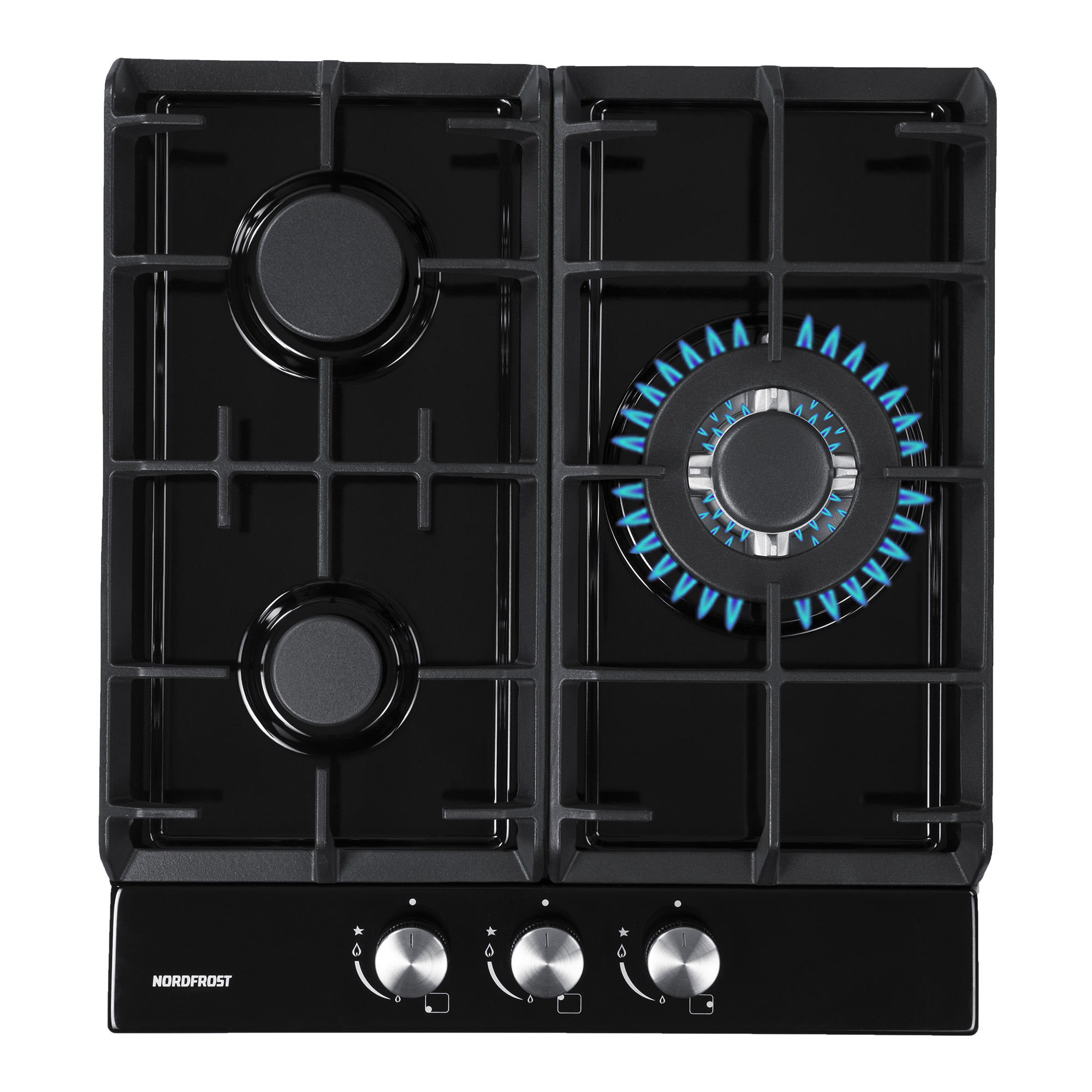 тип панели: газовая, количество конфорок: 3, материал панели: нержавеющая сталь/эмаль, установка: независимая, переключатели: поворотные, ширина: 45 см, глубина: 50 см, специальные конфорки: Двойная корона, двухконтурная, безопасность: защитное отключение конфорок, максимальная потребляемая мощность: 9.20 кВт