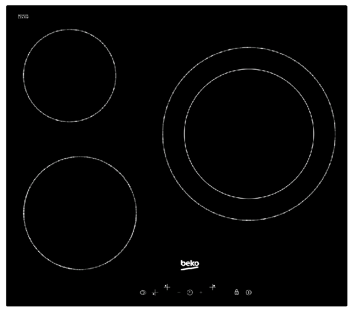 стеклокерамическая поверхность; 3 конфорки; независимая установка; защита от детей; сенсорные переключатели; кнопочное управление; индикатор остаточного тепла; ШхГ: 58х51 см