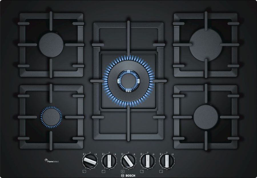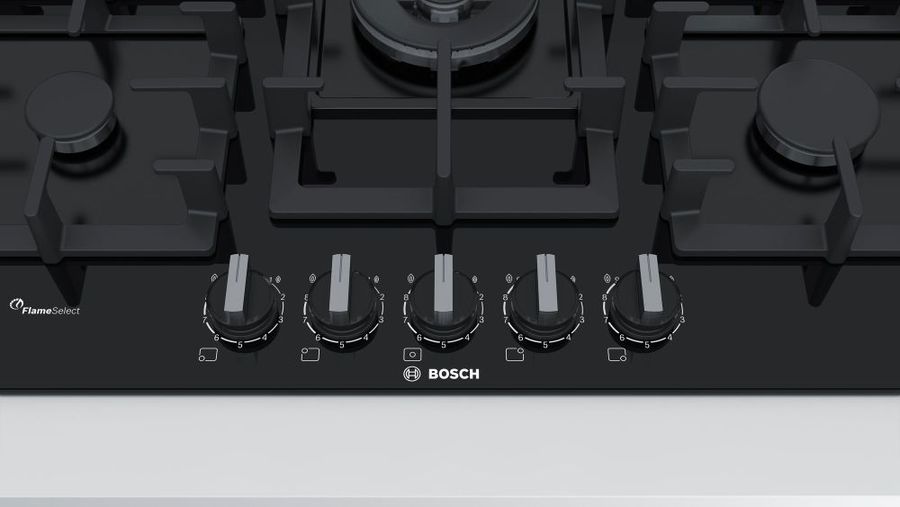линейка: Serie 6; поверхность из закаленного стекла; 5 конфорок; независимая установка; электроподжиг; газ-контроль; чугунные решетки; поворотные переключатели; ШхГ: 75.20х52 см