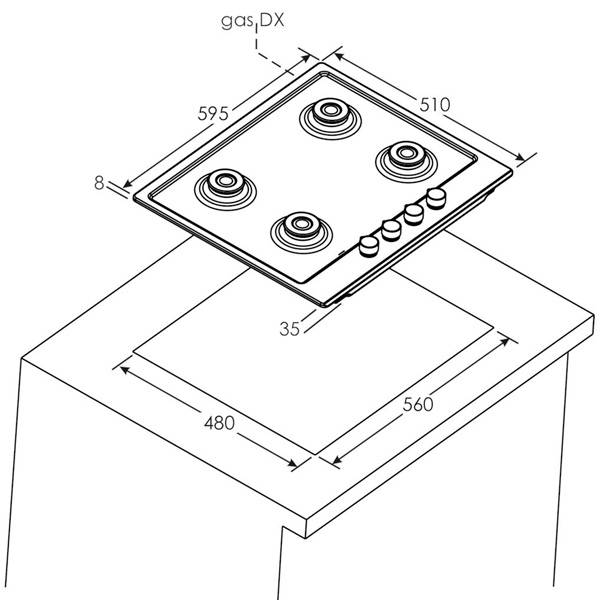 - Размеры для встраивания (ШхГ): 56 x 48 см