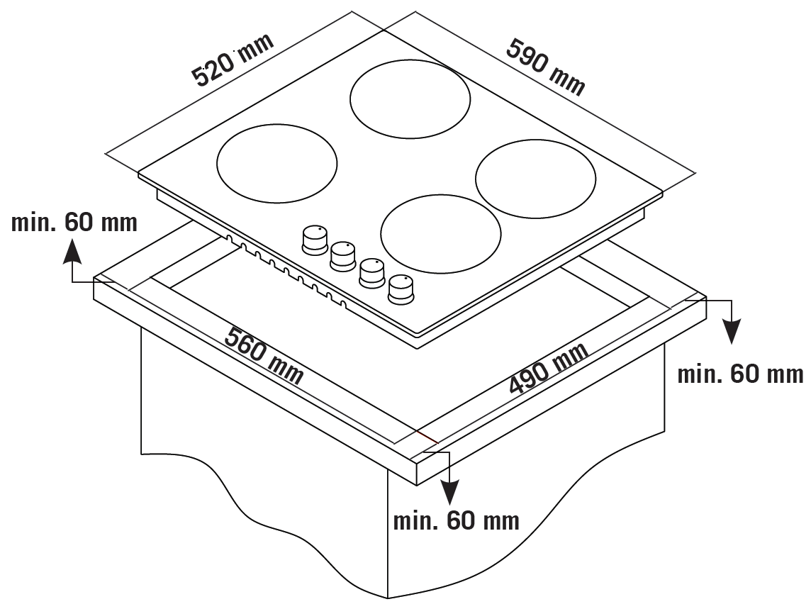 - Размеры для встраивания (ШхГ): 56 x 49 см