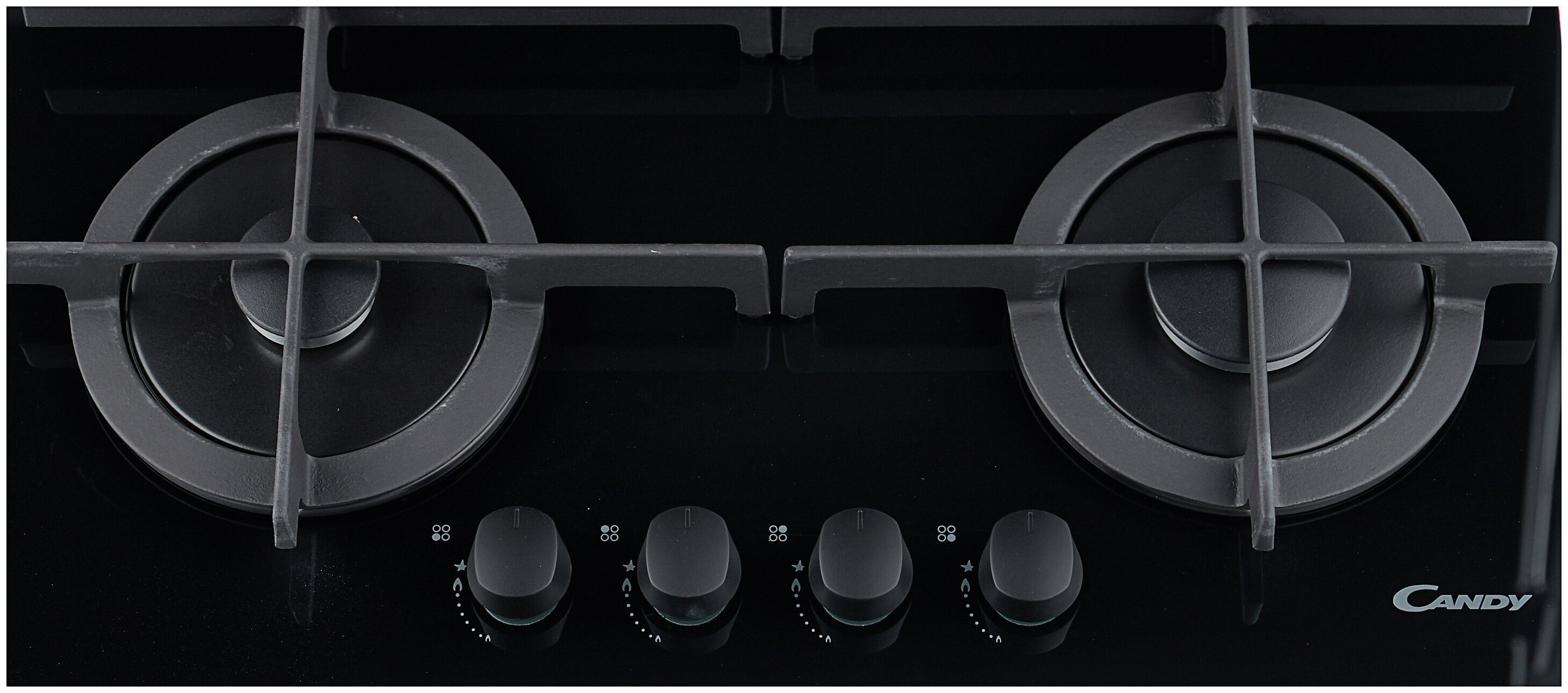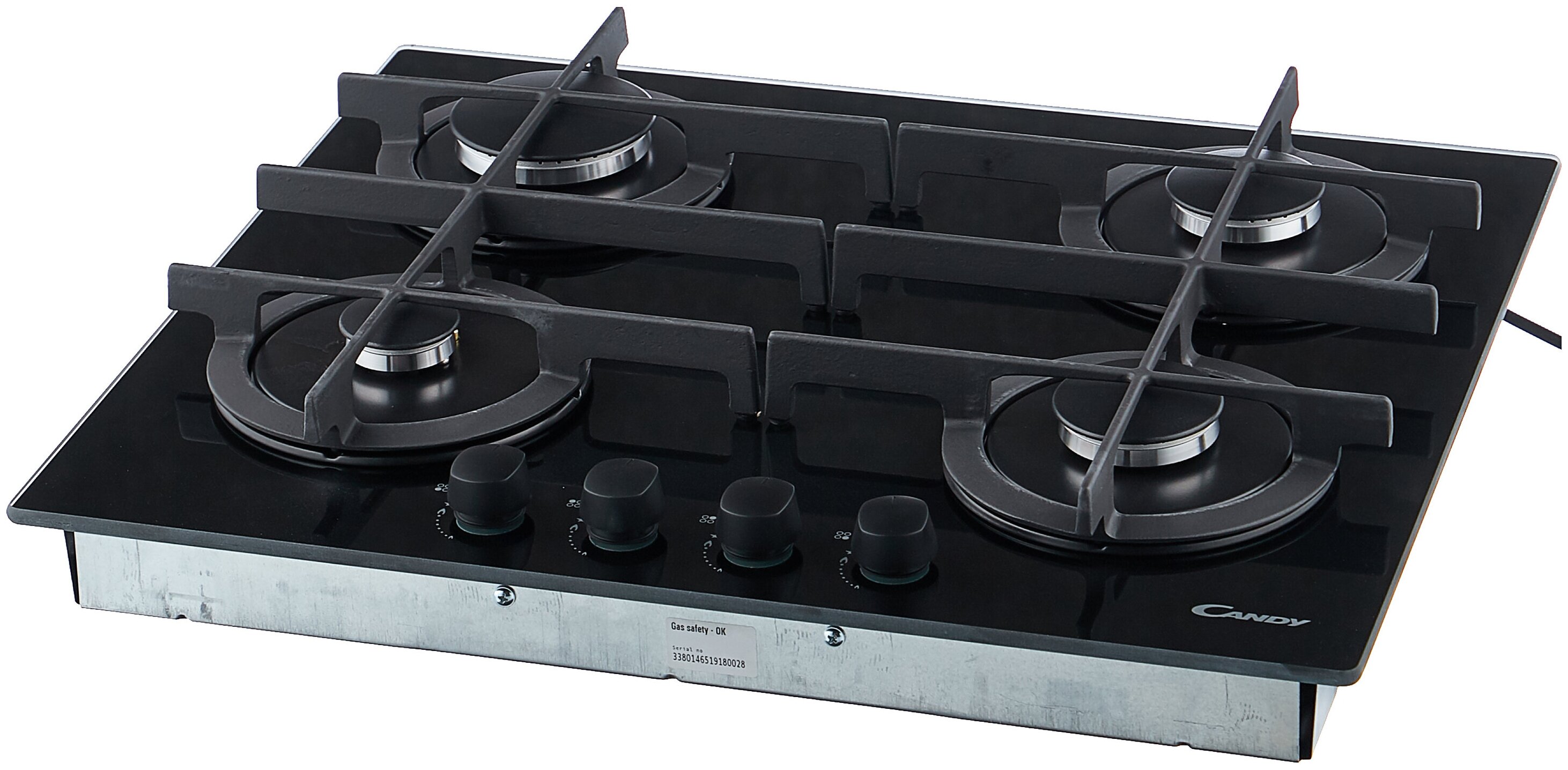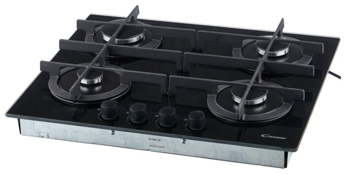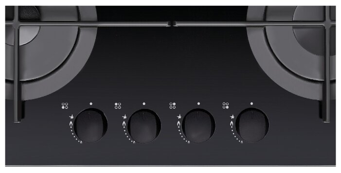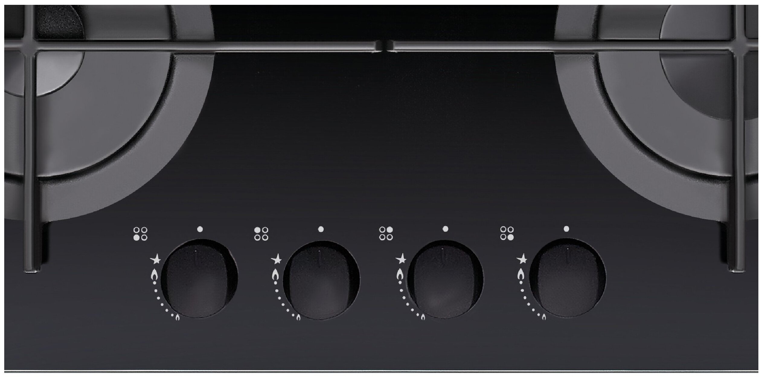 материал панели: закаленное стекло; количество конфорок: 4; установка: независимая; электроподжиг: есть; газ-контроль: есть; чугунные решетки: есть; переключатели: поворотные; ШхГ: 59.50х51 см