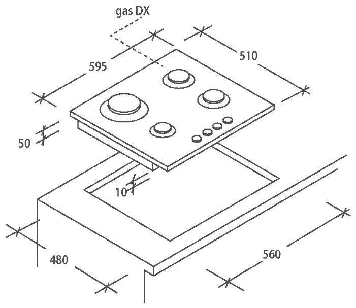 - Размеры для встраивания (ШхГ): 56 x 48 см