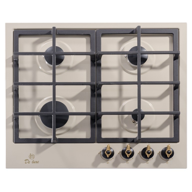 эмалированная поверхность; 4 конфорки; независимая установка; электроподжиг; газ-контроль; чугунные решетки; поворотные переключатели; ширина: 60 см