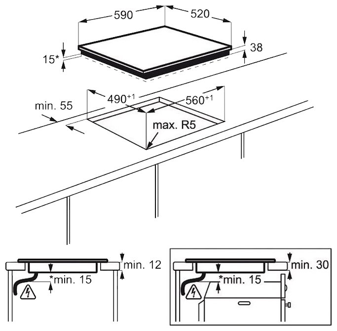 - Размеры для встраивания (ШхГ): 56 x 49 см