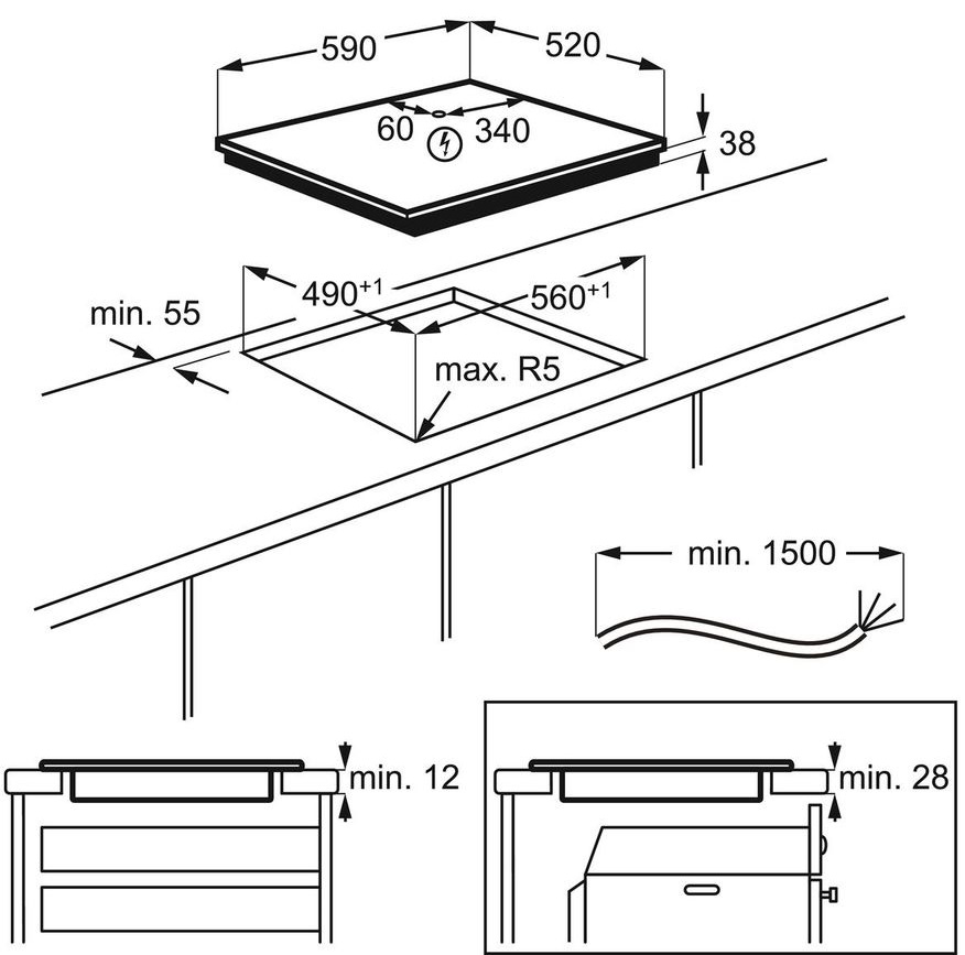 - Размеры для встраивания (ШхГ): 56 x 49 см