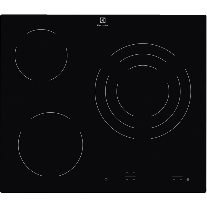линейка: BLACK line; стеклокерамическая поверхность; 3 конфорки; независимая установка; сенсорные переключатели; кнопочное управление; индикатор остаточного тепла; ШхГ: 59х52 см