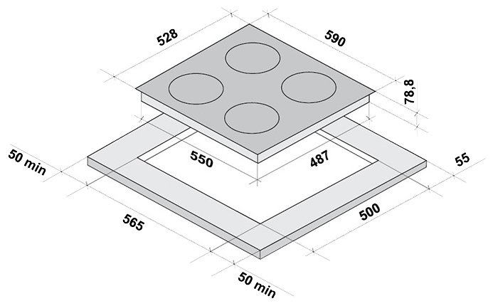• Размеры для встраивания (ШхГ): 55 x 48.7 см