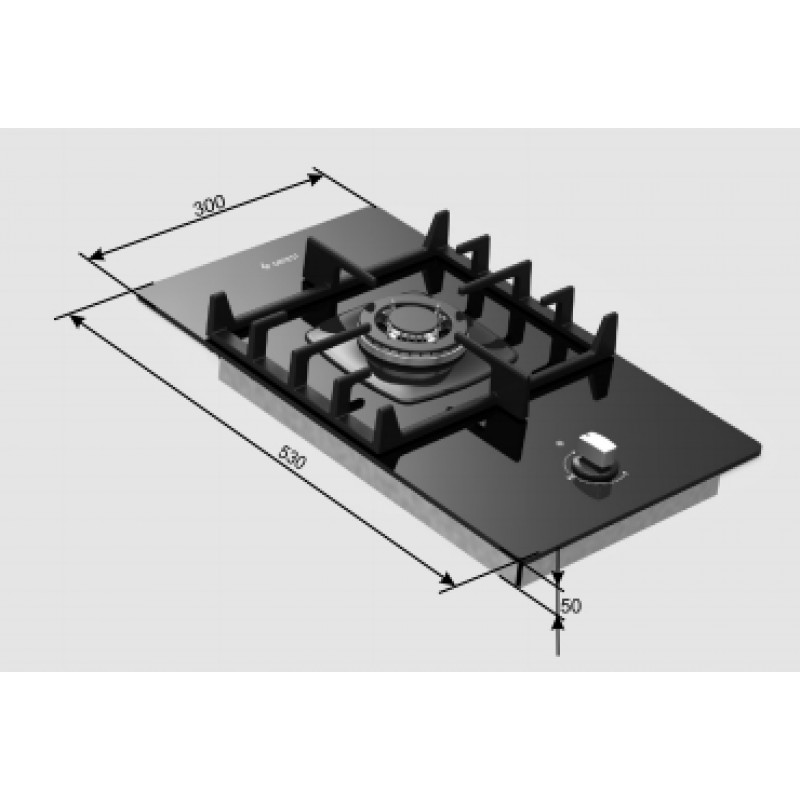 поверхность из закаленного стекла; 1 конфорка; независимая установка; электроподжиг; газ-контроль; чугунные решетки; поворотные переключатели; ШхГ: 30х53 см